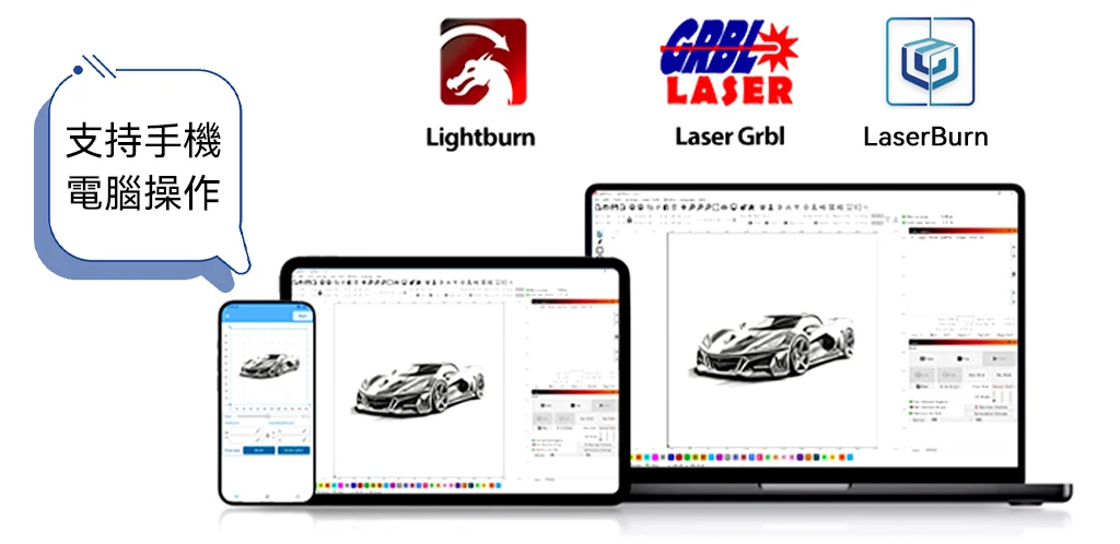:採用鐵與鋁,耐用性與散熱性更佳。防止桌面被激光損傷、提升散熱與切割效果。